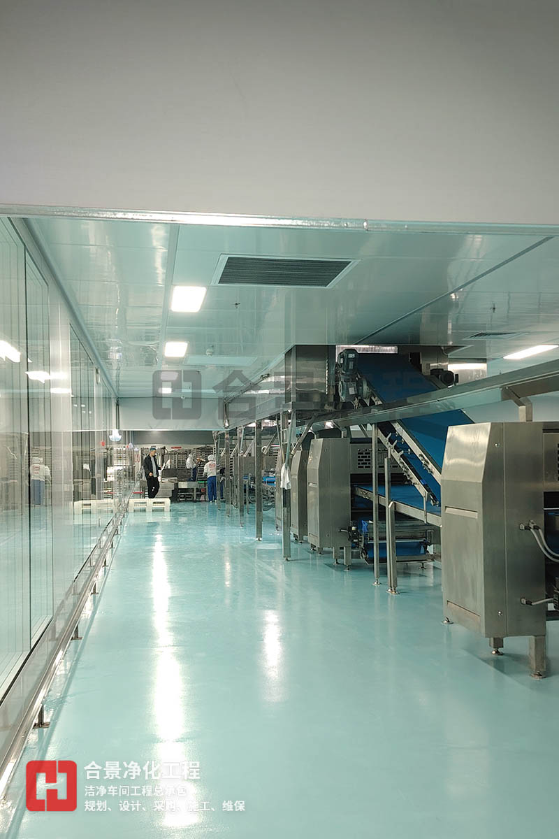 根據(jù)生產(chǎn)工藝特性,將食品廠凈化車(chē)間劃分為不同潔凈區(qū)域(如30萬(wàn)級(jí)、10萬(wàn)級(jí)、萬(wàn)級(jí))。通過(guò)壓差梯度實(shí)現(xiàn)氣流定向流動(dòng):清潔區(qū)與非清潔區(qū)保持≥10Pa正壓差;高風(fēng)險(xiǎn)操作區(qū)形成相對(duì)正壓核心區(qū);物料傳遞口設(shè)置雙扉連鎖氣閘裝置;人員通道采用風(fēng)淋室與緩沖間雙重隔離。