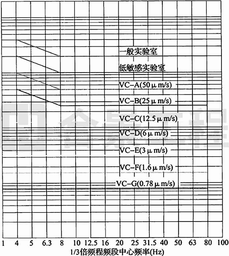A.0.1 拉絲塔的容許振動(dòng)參數(shù)可按精密設(shè)備、儀器容許振動(dòng)通用標(biāo)準(zhǔn)曲線(圖A.0.1)中VC-B(25μm/s)曲線確定。