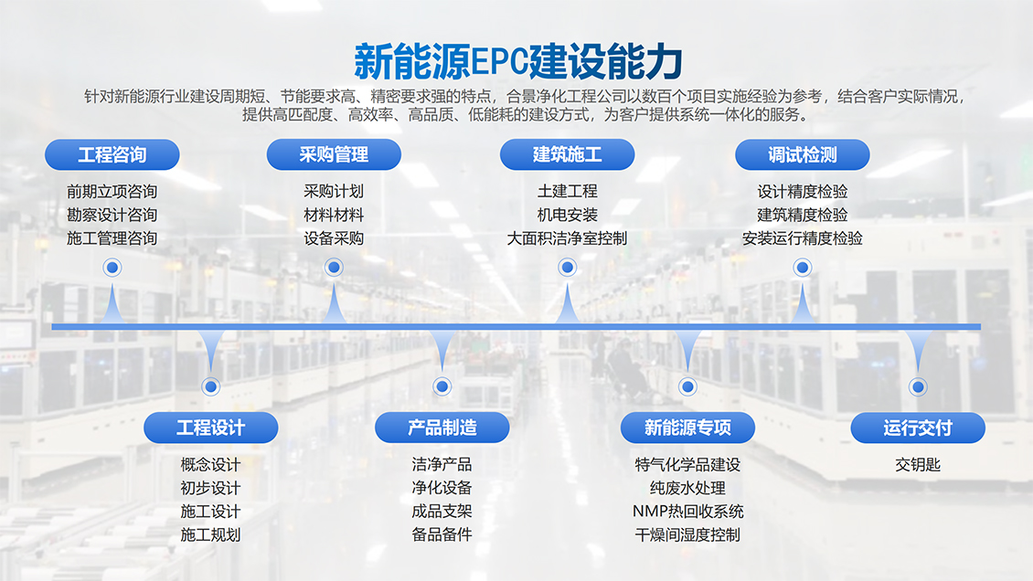 合景智慧建設(shè)深耕工程建設(shè)領(lǐng)域二十余年,是國內(nèi)外高科技工業(yè)建筑領(lǐng)域EPC服務(wù)佼佼者,尤其是新能源電池、OLED、半導體、光學鏡片、芯片、食品及原料加工、一二類醫(yī)療器械領(lǐng)域廠房建設(shè)的業(yè)績突出。公司始終堅持智慧智能總包建設(shè)和“與顧客共同創(chuàng)造價值”的經(jīng)營理念,在項目初期、施工、服務(wù)等方面依據(jù)合景智慧建設(shè)技術(shù)團技術(shù)建議,提高建造效率,減少建廠能耗等成本,實現(xiàn)業(yè)主效益最大化。