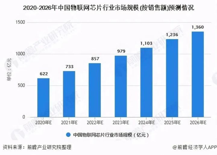 隨著傳統(tǒng)行業(yè)自動化升級,物聯網在垂直領域終端用戶的滲透率提升,物聯網芯片市場快速增長,前瞻產業(yè)研究院分析預計,2022年我國物聯網芯片市場規(guī)??蛇_857億元人民幣,有望在2024年達到千億規(guī)模,來自Counterpoint的數據顯示,中國消耗了全球近60%的蜂窩物聯網芯片。