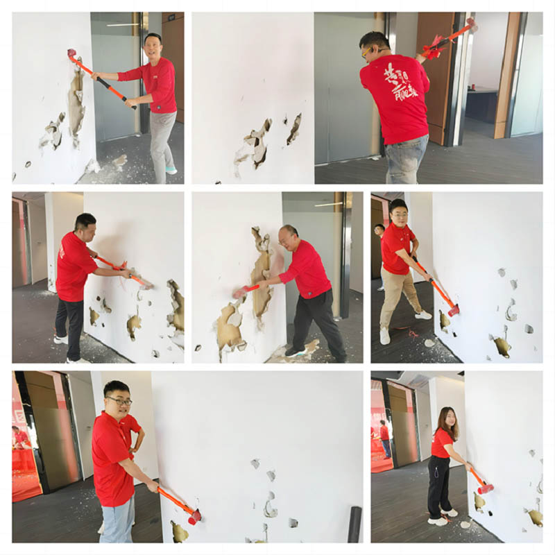 紅桌、紅錘、紅毯,色澤鮮亮紅潤(rùn)的乳豬,紅紅火火!一錘開(kāi)工大吉,二錘財(cái)源廣進(jìn),三錘萬(wàn)事如意!伴隨著禮花的綻放,合景人手握禮錘,一同為新辦公區(qū)裝修開(kāi)工儀式揭開(kāi)序幕。在熱烈的掌聲中,大家共同慶祝辦公樓裝修工程的正式啟動(dòng)!